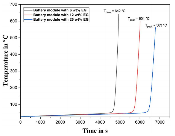 圖13. 磷酸鐵鋰(LiFePO?)電池模組熱濫用反應(yīng):CPCM中不同膨脹石墨(EG)添加比例的影響