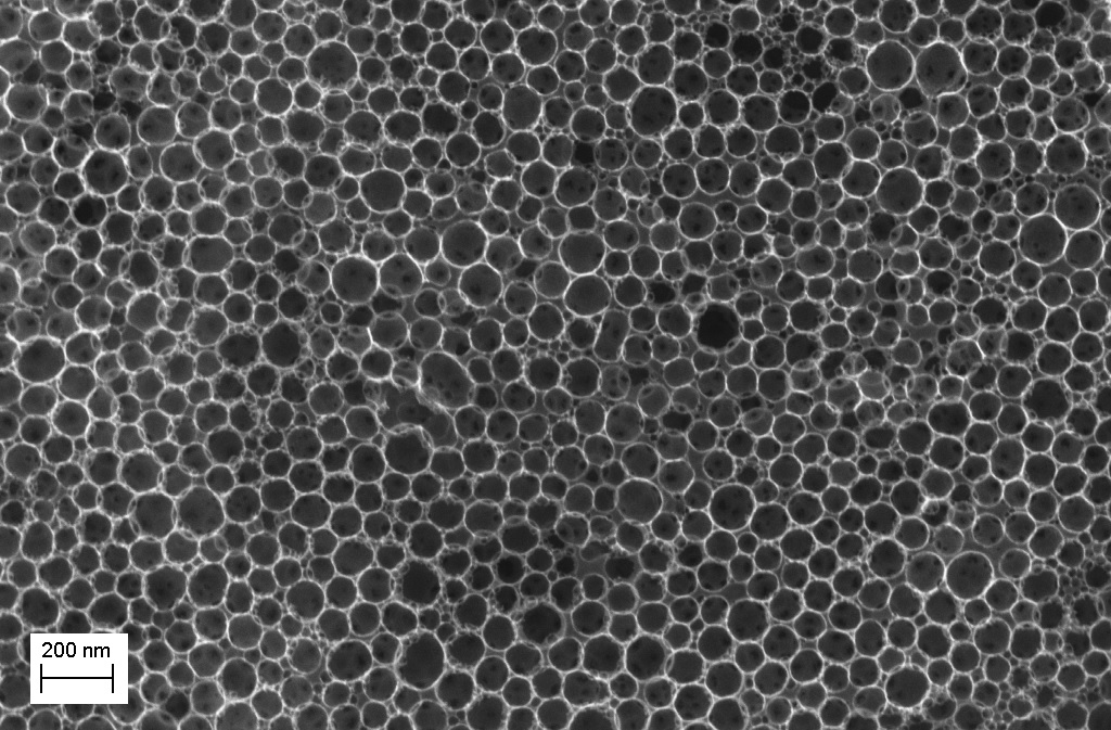 納米多孔碳粉末Nanoporous Carbon Powder內(nèi)部是三維貫通的納米孔道結(jié)構(gòu),每個(gè)孔與周圍12個(gè)孔相連,孔道結(jié)構(gòu)有序,孔徑分布窄,可在10-1000納米的范圍內(nèi)精確調(diào)控。NCP具有較好的導(dǎo)電性(2-10 S/cm)、內(nèi)部三維貫通的孔道結(jié)構(gòu)(10-1000納米可調(diào))、可表面改性(親水到憎水、默認(rèn)親水含羥基基團(tuán))、含碳量~95%(剩余H、C)、較大的有效比表面積(200-600m2/g,隨孔徑變化)、粒徑大于10微米,非常有望在催化劑載體、電極材料、色譜柱吸附劑、蛋白質(zhì)分離等方面得到重要應(yīng)用。