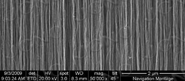 目前,只有4英寸,直徑5-10nm、高度300微米、間距幾十納米的垂直陣列有現(xiàn)貨